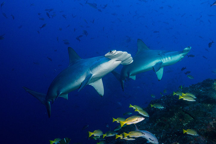 Hammerhead sharks at cleaning station, Cocos Island, Costa Rica