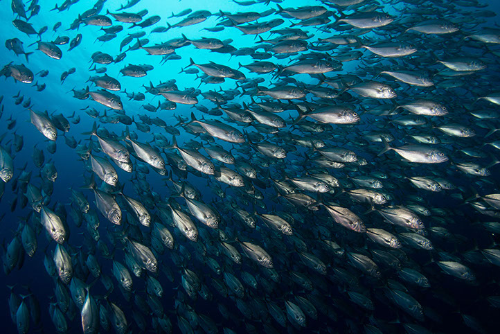 School of glassfish near the surface, Raja Ampat, Indonesia
