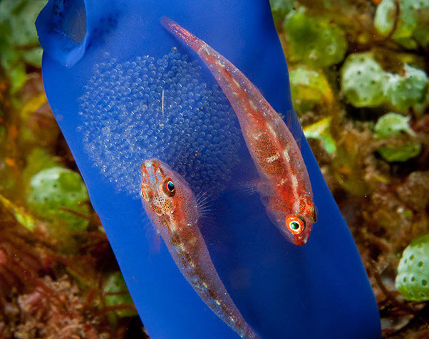 Pair of triplefin goy and eggs on tunicate, Bali, Indonesia