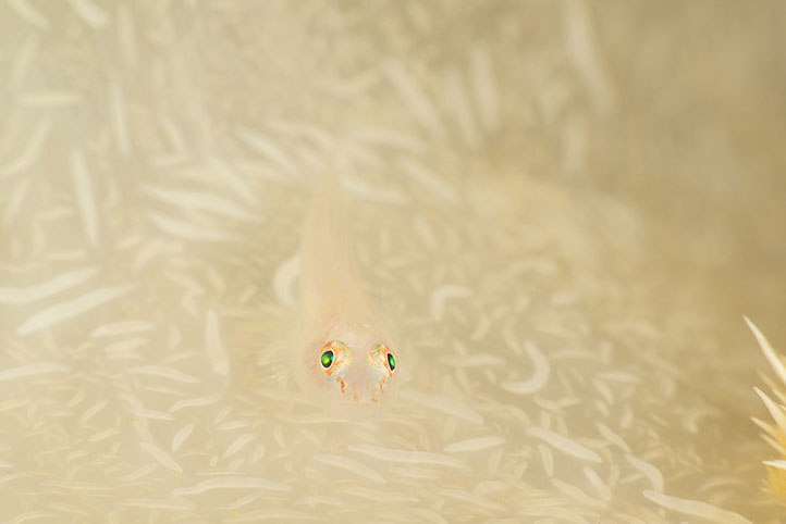 Translucent white fish in soft coral, Lembeh Strait, Indonesia
