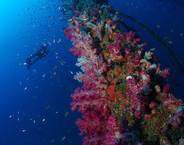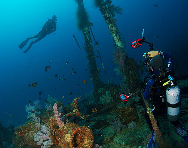 Divers on Djabella Wreck, Coin de Mire, Mauritius