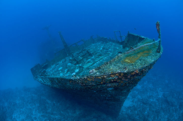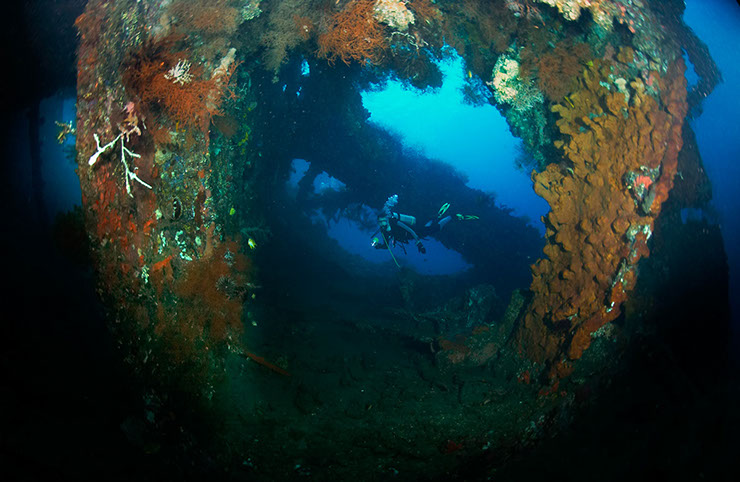 Diver exploring the Liberty Wreck, Bali, Indonesia