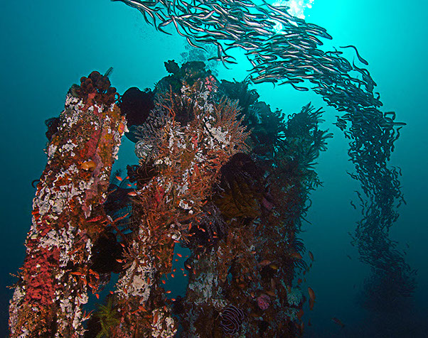 School of snapper on Tug II Wreck, Flic-En-Flac, Mauritius